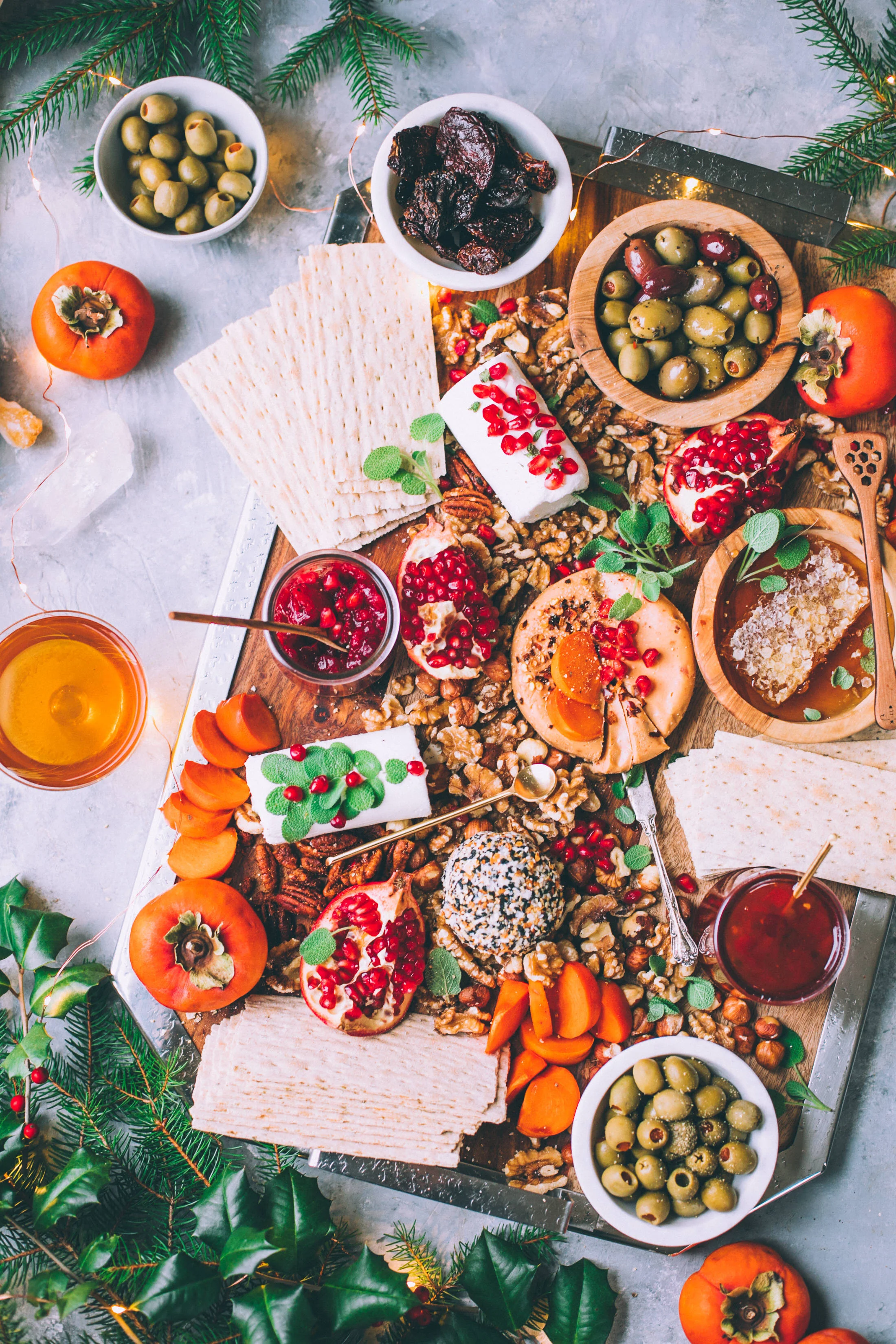 FRUITS: Fuyu persimmons and pomegranate are my go-to for Winter cheese boards! Grapes, sliced pears, apples, dates and dried apricots are also great.