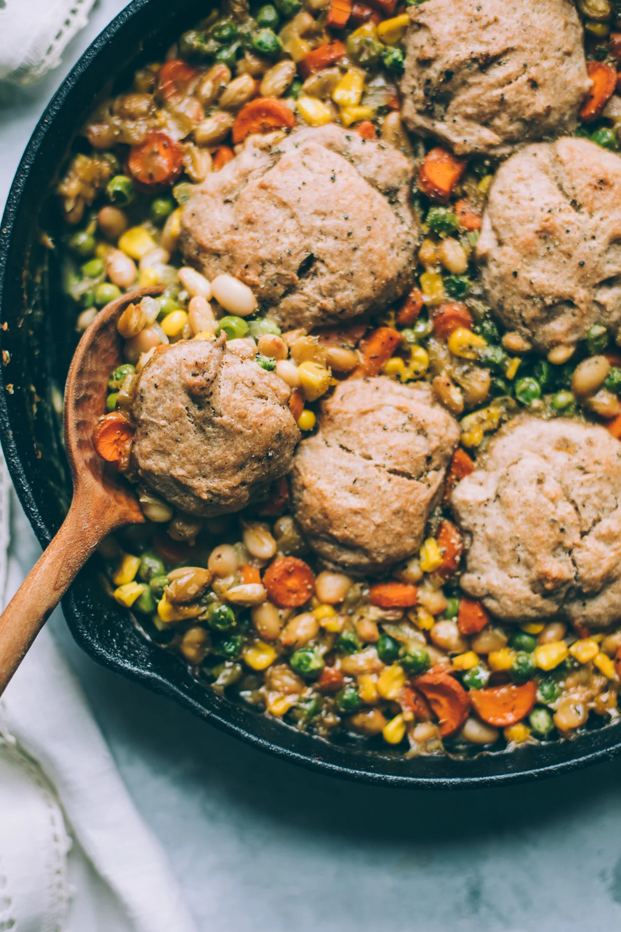 Cozy White Bean Vegetable Cobbler with Spelt Biscuits (Vegan)